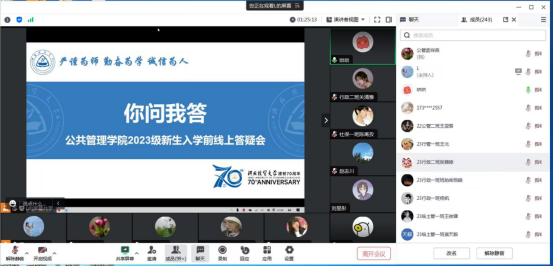 8月16日晚,best365体育亚洲举办2023级新生“你问我答”线上答疑会,公司党委副书记孟祥燕主持,新生班级辅导员、公司党务和团务负责教师、2023级新生班级助理及全体本科及二学位新生参加。
