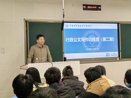 11月27日,best365体育亚洲在第三教学楼A107举办了第二期行政公文写作训练营第二讲。本次讲座邀请文京教育首席研究与辅导专家吴卫民主讲,公司党委副书记孟祥燕主持,训练营全体学员参加。