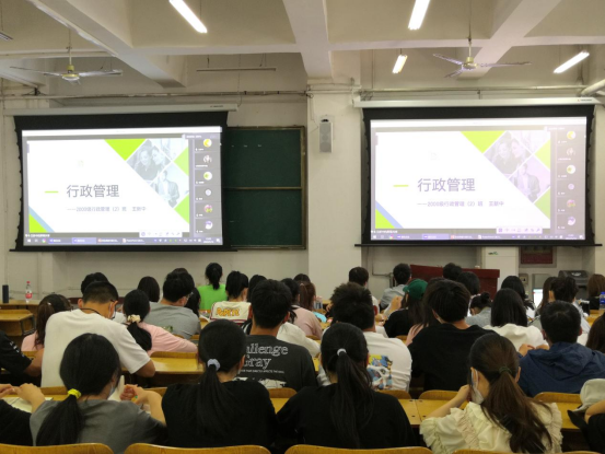 讲座伊始,王新中向大家分享了自己求学工作经历,讲述了行政管理专业知识的“博”和“深”是如何助力自己成长的,列举了公共管理类毕业生的就业岗位和岗位要求,他勉励大家在校期间要注重学习力培养、价值观培育、思维养成。杨新鸣同学以“昨天 今天 明天”为题,分享了自己的校园成长经历,鼓励大家要依托公司提供的创新创业教育等良好条件,创造属于自己的精彩。郭鹤男分享了自己的大学经历,号召同学们要借助公司良好的院风学风,跑出当代青年的最好成绩。
