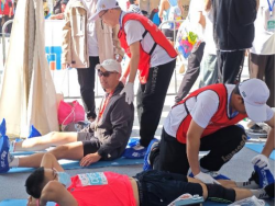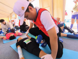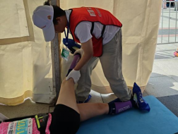 3月31日正式开跑,当赛后恢复区迎来了第一位选手时,志愿者们立即行动起来。公司志愿者在第三小组对陆续抵达的选手们进行拉伸放松服务,帮助选手们缓解疲劳、恢复体能。经过三个小时的连续服务,赛后恢复工作圆满完成。