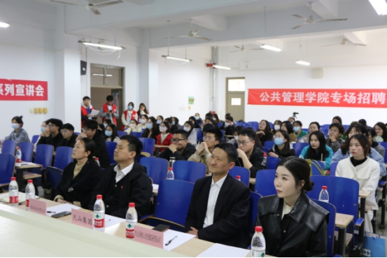 各用人单位分别从企业基本情况、企业优势、工作发展前景、招聘岗位等方面向同学们进行了详细介绍。同学们认真聆听各企业的介绍和岗位要求,活动现场气氛热烈。宣讲完毕,毕业生就拟招聘岗位的工作环境、薪资待遇、晋升空间等问题和意向企业进行了深度沟通。