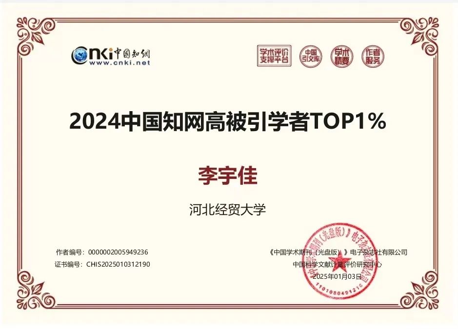 在此次权威评选中,best365体育亚洲以其卓越表现脱颖而出,李宇佳、张学儒、高星共三位教师被遴选为“2024中国知网高被引学者TOP1%”。