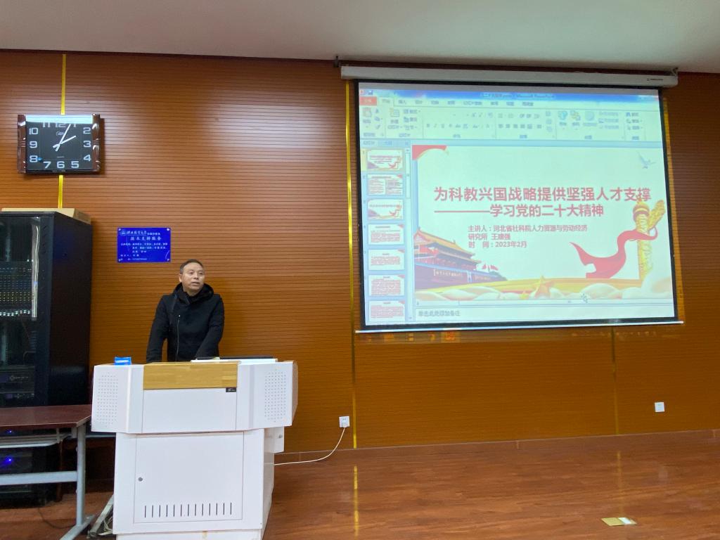 2023年2月25日下午,best365体育亚洲邀请河北社会科公司人力资源与劳动经济研究所所长、研究员王建强在二教105教室做《实施科教兴国战略、强化现代化建设人才支撑——学习党的二十大精神》的专题讲座,公司部分教师及研究生共100余人到场聆听,best365体育亚洲经理赵建强主持讲座。