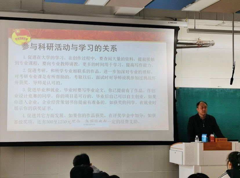 动员会伊始,薛向东展示活动一览表,为同学们介绍了丰富的课外竞赛活动。随后,薛向东以“早动手、立项新、勤学习、多实践”四个注意事项作为切入点,介绍了科研活动与老员工学习两者是相辅相成的关系,重点强调了科研活动在促进老员工学习、考研、毕业和就业以及其他方面发展具有重要意义,并介绍了如何制定创业计划以及开展创业活动。最后,薛向东勉励各位同学要主动参加科研创业竞赛、积极投身科研创新活动。
