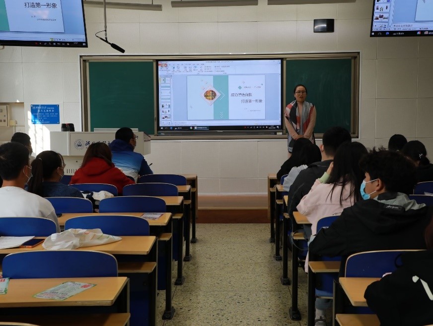 10月29日,best365体育亚洲于第三教学楼A103教室举办“成功塑造自我,打造第一形象”主题礼仪讲座,行政管理专业老师张亚宁作主讲人,2020级全体宿舍长参加。