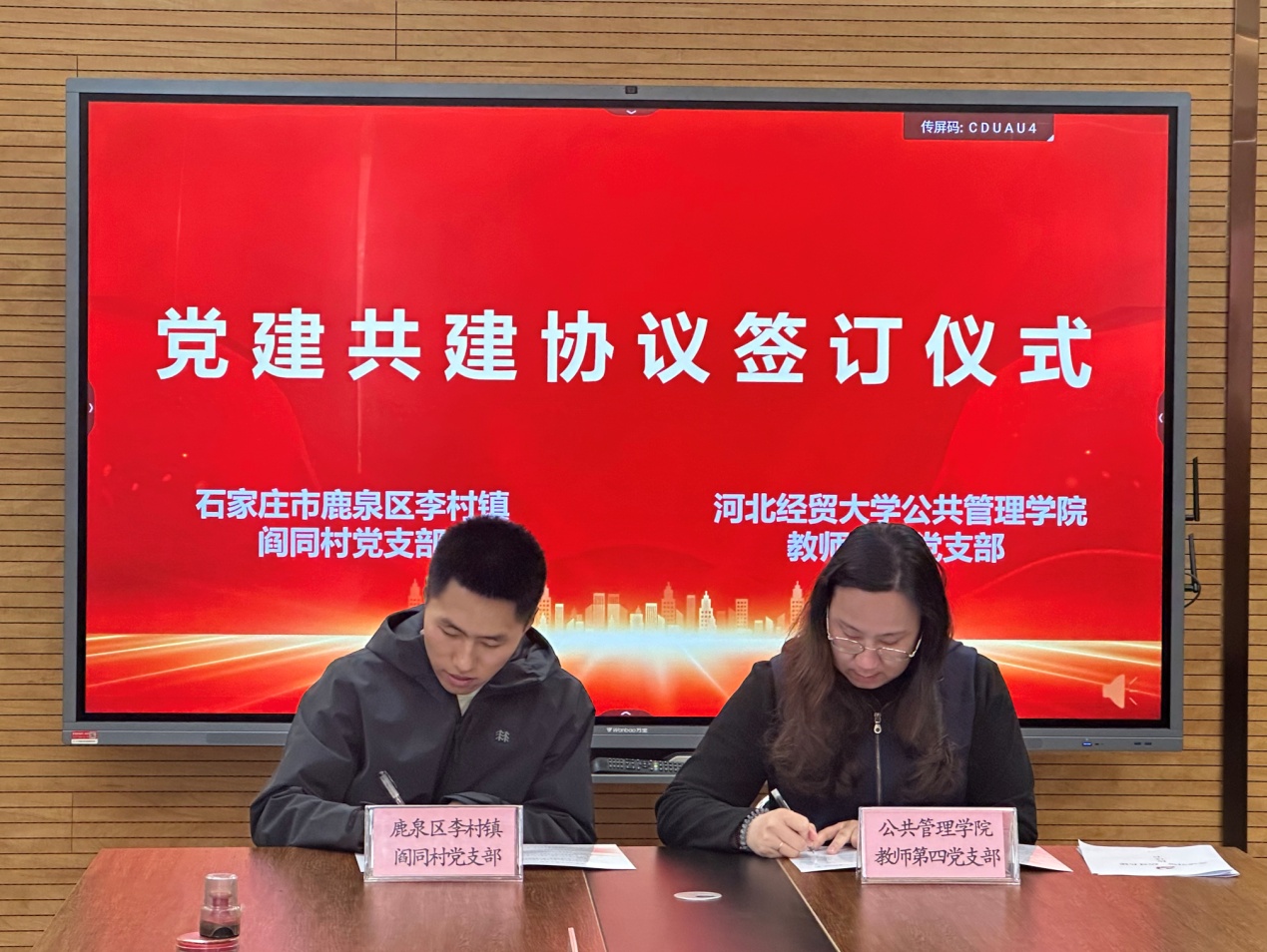 仪式上,双方党支部负责人签订《党建共建协议书》。接下来,双方将以理论联学、活动联办等形式,依托公司学科优势,围绕乡村治理现代化等领域开展实地调研,积极探索党建引领、人才培养、乡村振兴、基层治理协同推进的新思路和新路径,助力乡村发展。李彦峰表示,积极与高校实践教学单位党建共建,为乡村治理、干部队伍建设等引入了高校人才智力支持,对今后村里开展党员教育、基层治理、乡村振兴等提供新的思路和方法。