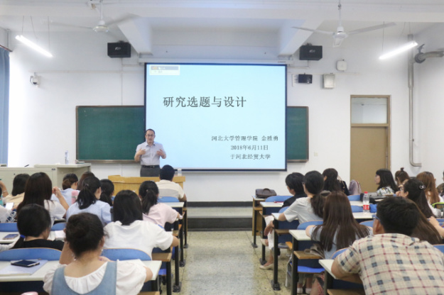 6月11日下午,河北大学管理公司副经理金胜勇教授应best365体育亚洲的邀请,在A教107做主题为“研究选题与设计”的学术讲座。公司部分教师及图书馆专业员工等共百余人到场聆听。