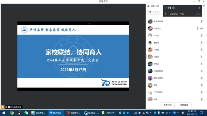 8月18日晚,公司举办“家校联结,协同育人”2024届毕业生及家长线上交流会。会议由公司党委副书记孟祥燕主持,公司就业联络员、毕业生辅导员、2024届毕业生及家长参加会议。